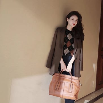 パンツにもスカートにも合わせやすく、トラディショナル感がある上品スタイルに♪