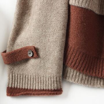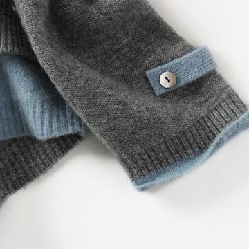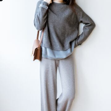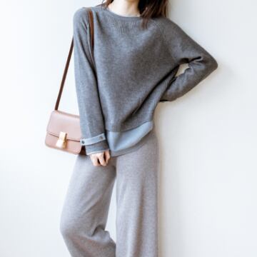グレーとキャメルの配色がおしゃれなフェイクレイヤードセーターが登場しました。丈やシルエットはシンプルで、でも袖のデザインがアクセントになっています。ミディアム丈で、羽織り物としても使えるので、デイリーウェアとしてもビジネスシーンにも合わせられます。