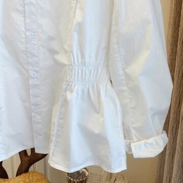 モノトーンの配色が上品で、女性らしいシルエットが印象的なノーカラーブラウス。トレンドを押さえたデザインで、中でもショート丈とシングルブレストの組み合わせは、レトロな雰囲気と今っぽさを併せ持っています。ラウンドネックで、ノーカラーなので様々なアウターと合わせやすく、オフィスやビジネスシーンから普段使いまで幅広く活躍すること間違いなし!