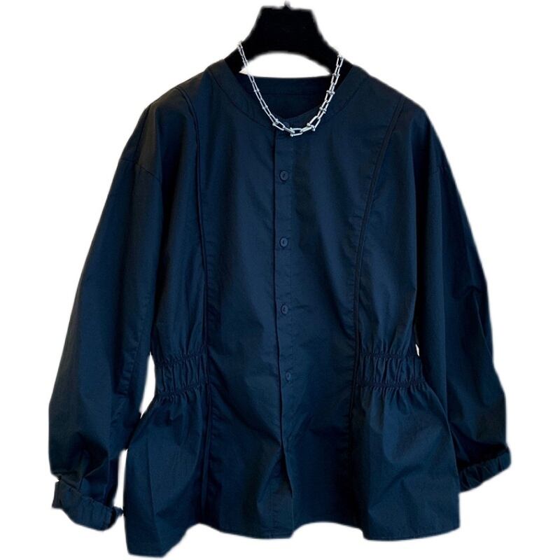 ノーカラーブラウス シャツ トップス スイート ガーリー ブラック 黒 ホワイト 白 ショート丈 袖あり 長袖 ラウンドネック シングルブレスト ボタン ポリエステル 大人女子 大人 上品 おしゃれ きれいめ シンプル デイリーウェア レトロ レトロ風 こなれ感 キュート かわいい 女子 個性的 デザイン 主役級 存在感 無地 春 スプリング 20代 10代 レディース 女性用 オフィス ビジネス OL 通勤 学生 学校 通学 S M L XL 2XL
