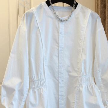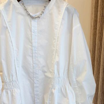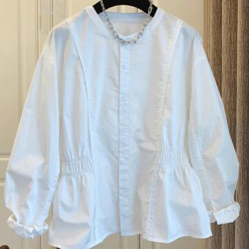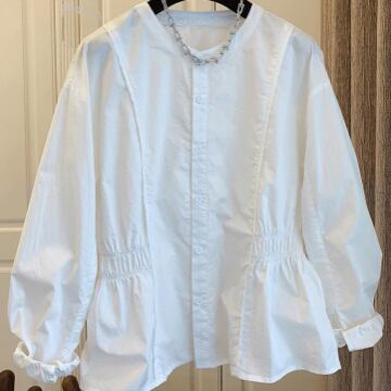 シンプル×ガーリーなノーカラーブラウスです!
