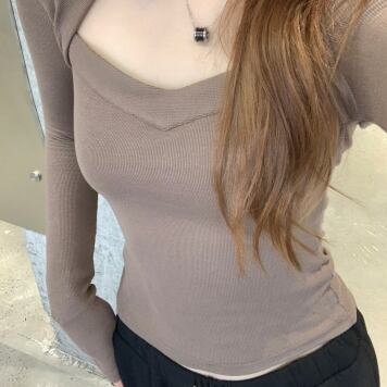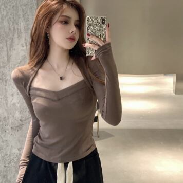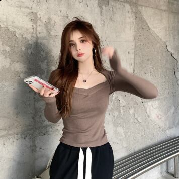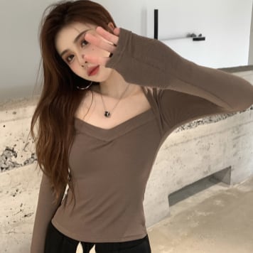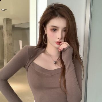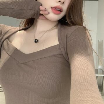 変形デザイン長袖トップス トップス カットソー ショート丈 長袖 萌袖 スクエアネック スリム タイト 細身 ストレート スマート 伸縮性 かわいい 大人可愛い きれいめ カジュアル 大人 おしゃれ かっこいい 大人女子 個性的 クール セクシー 存在感 爽やか 無地 春 秋 10代 20代 30代 40代 レディース ママ 女の子 学生 デート お出かけ 公園デビュー お泊まり 休日 ジム ヨガ アウトドア 旅行 部屋着 着回し 普段使い コーデ スタイル モテ 安い 流行 フリーサイズ サイズ 茶色