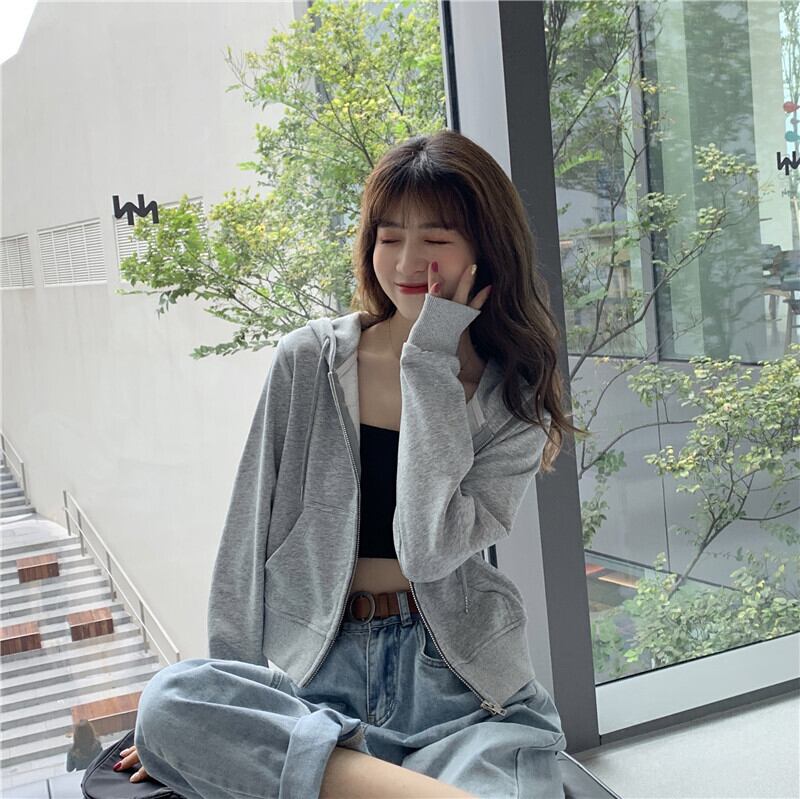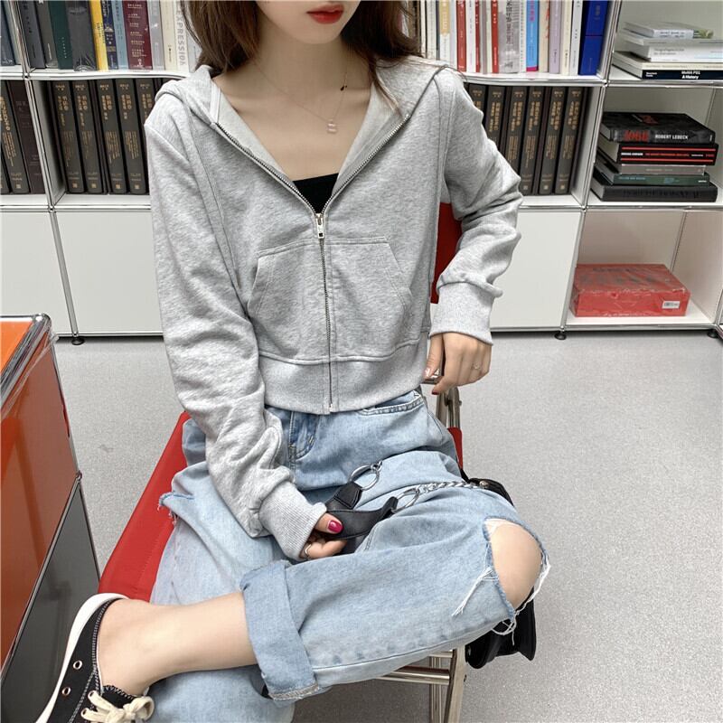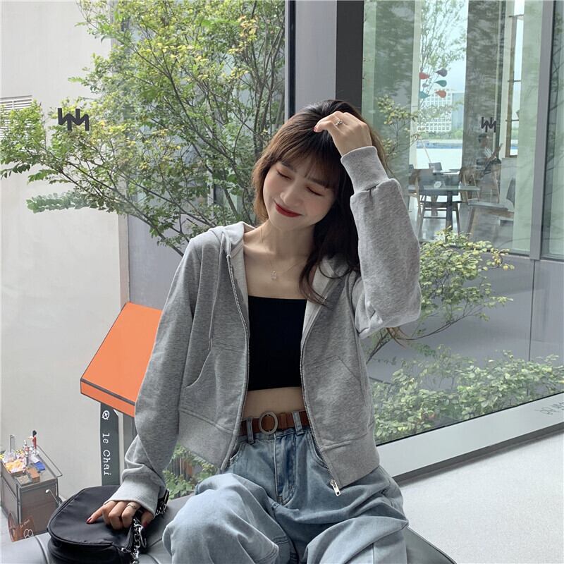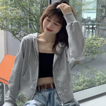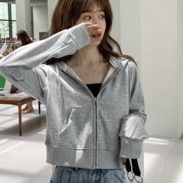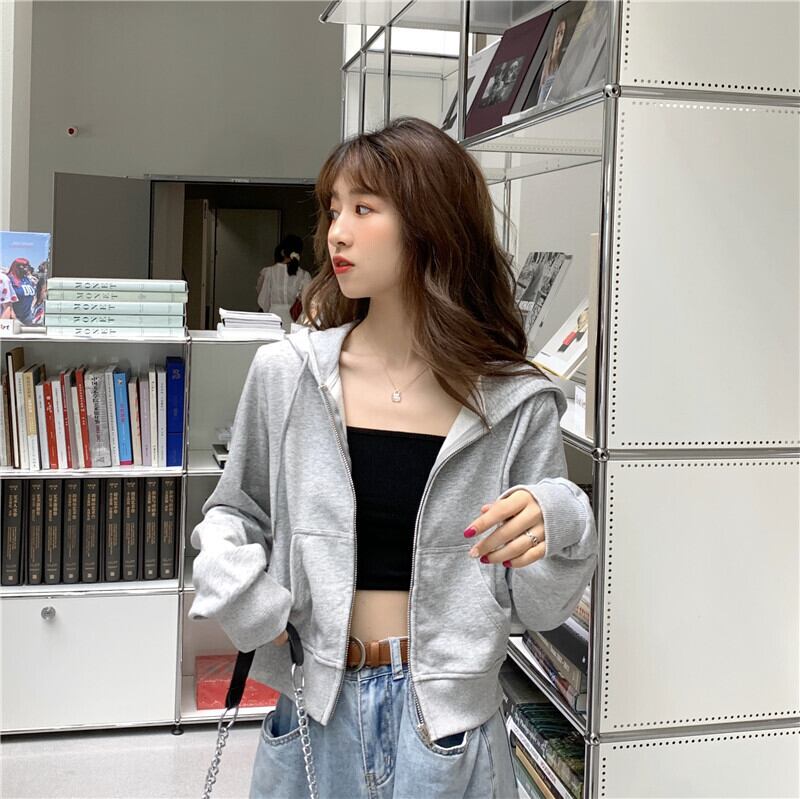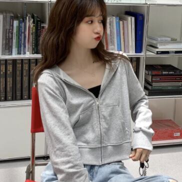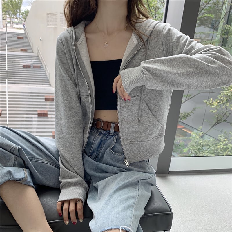 ショート丈パーカー トップス フーディー シンプル グレー 灰色 ショート丈 袖あり 長袖 フード ファスナー ジッパー 大人女子 大人 上品 おしゃれ デイリーウェア キュート かわいい 女子 主役級 存在感 無地 春 スプリング 冬 ウインター 20代 10代 レディース 女性用 学生 学校 通学 デート お出かけ 女子会 食事会 休日 おうち らくちん 着回し 普段使い モテ 重ね着 レイヤード トレンド ファッション コーデ 定番 ワンサイズ