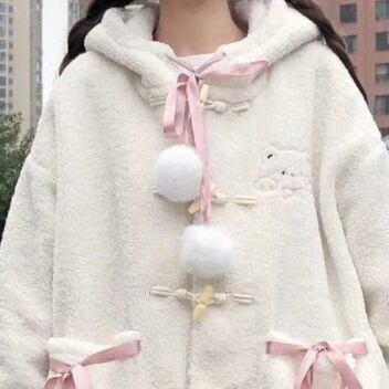 くまみみフードがかわいいふわふわコート