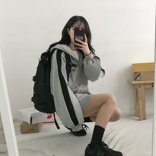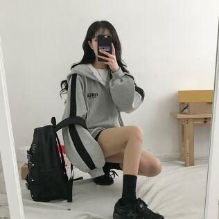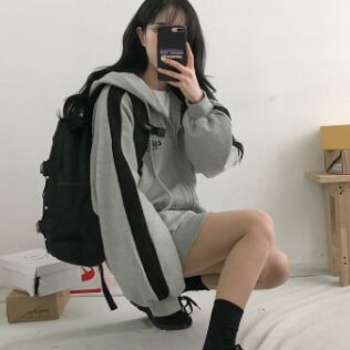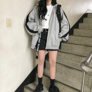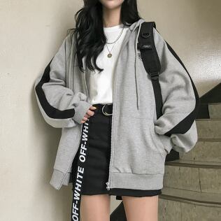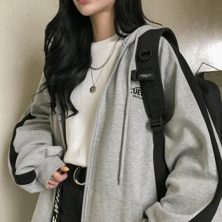 こちらは、かわいくておしゃれなパーカー トップスです。シンプルなデザインに、フードやファスナー、ポケットなどのアクセントが入った、ボーイッシュなスポーティーなデザインが特徴です。グレーのミディアム丈で、ロールアップして着るとこなれ感が増します。ワンポイントの文字とラインデザインがクールな存在感を放ちます。