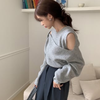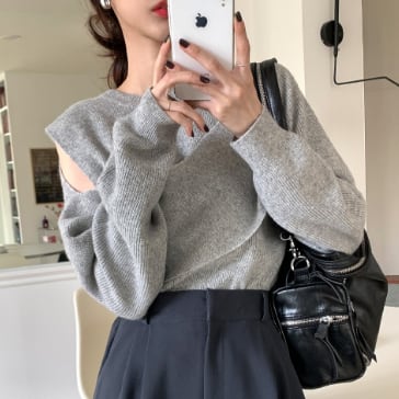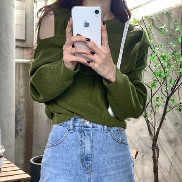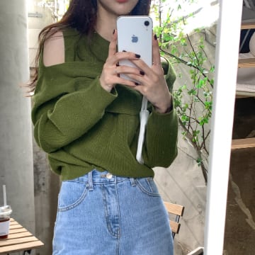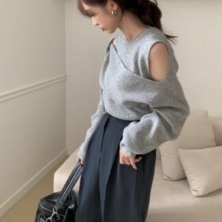 アシンメトリーニットトップスは、大人女子にぴったりのクールで上品な一枚です。オフショルダーのデザインが優しくトレンド感を演出。レギュラー丈と長袖でカジュアルだけど、一枚で主役級の存在感があります。袖のくしゅっとしたデザインで雰囲気をプラス。大人の女性にこそ着て欲しい、くすみカラーのグレー、緑、赤の色味があります。