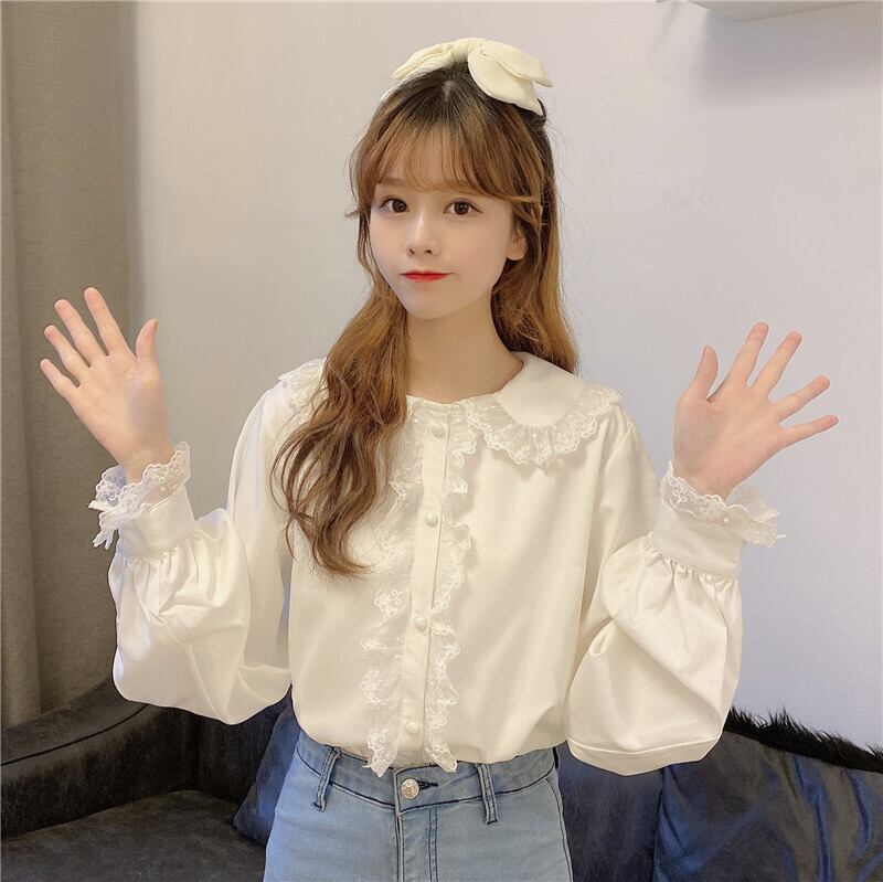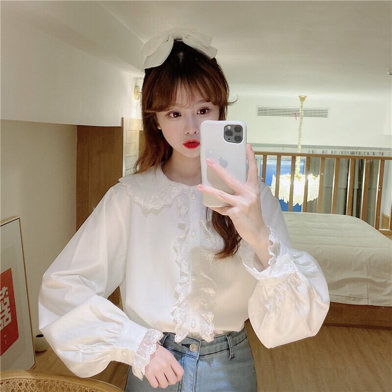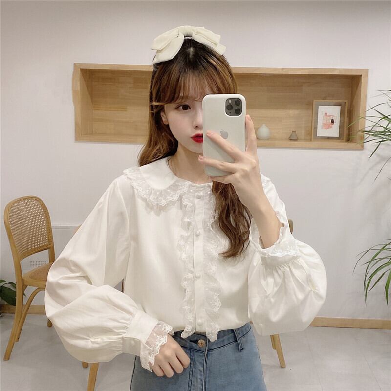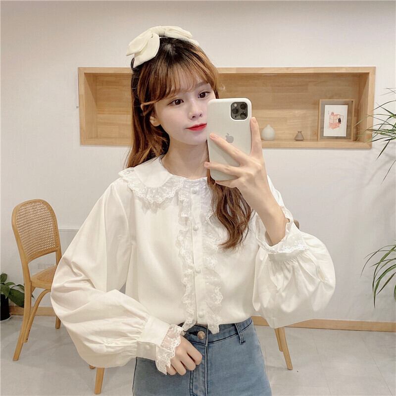 トップス シャツ 白シャツ 長袖 ボリューム袖 パフスリーブ 萌袖 丸襟 レース 刺繍 フリル かわいい 大人可愛い シンプル カジュアル おしゃれ お洒落 レトロ 大人可愛い 大人女子 ラブリー キュート ガーリー 主役級 存在感 無地 春 夏 秋 入学式 入園式 卒業式 卒園式 10代 20代 30代 レディース 女性用 ママ 女の子 学生 デート お出かけ 女子会 お泊まり 休日 高原 着回し 韓国 韓国系 ファッション コーデ モテ 新作 定番 送料無料 トレンド インポート 海外 人気 女子力