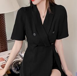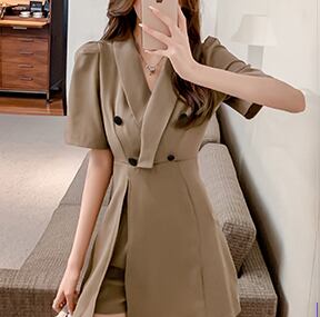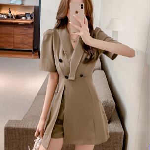 パンツスーツ ダブルボタントップス× ホットパンツ ハイスリット ボトムス 足見せ 女っぽ スタイリッシュ セットアップ ジャケット 上着 ショートパンツ ミディアム丈 半袖 五分袖 パフスリーブ Vネック 襟付き Aライン 切り替えデザイン ハイウエスト 上下セット 2点セット ツーピース きれいめ シンプル カジュアル おしゃれ かっこいい 大人女子 クール セクシー 無地 春 秋 レディース パーティー イベント 着回し 韓国系 脚長 S M L XL 2XL 大きいサイズ ブラック キャメル