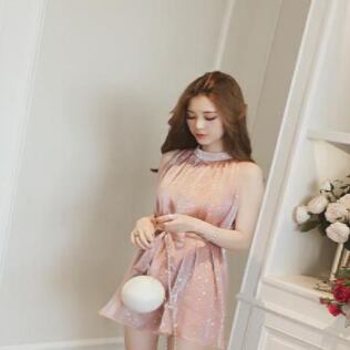 この季節にピッタリなノースリーブワンピースが登場しました!トップスにも使えるショート丈のAラインデザインに、女性らしいハイネックがポイント。透け感のあるシアー素材で、上品でエレガントな印象を与えます。