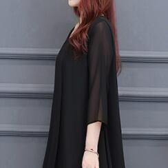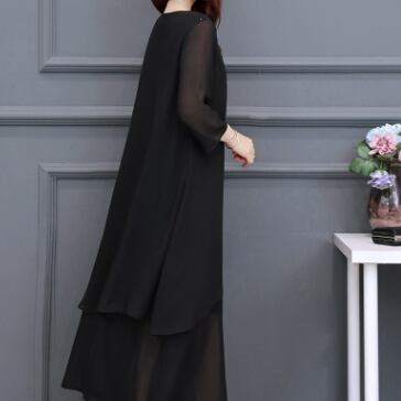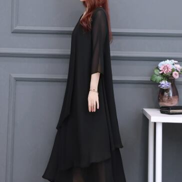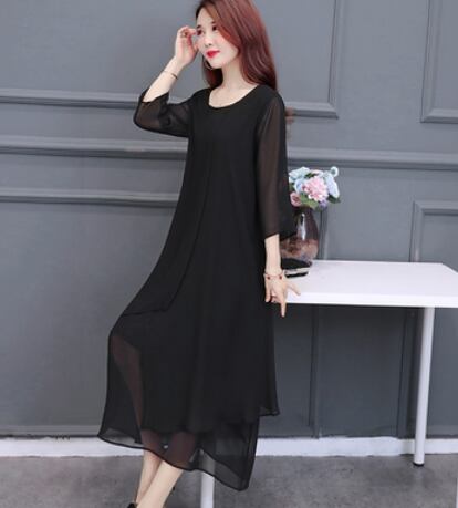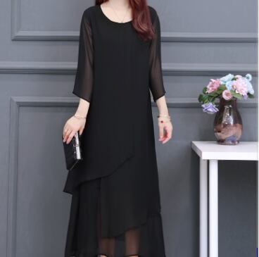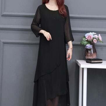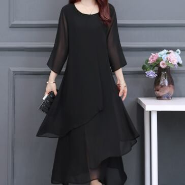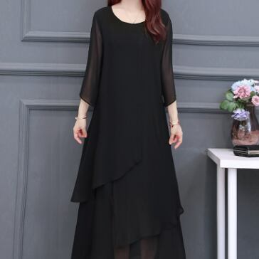 ブラックフォーマルワンピース ワンピース ロング丈 七分袖 ラウンドネック フレア Aライン シフォン お得 大人可愛い きれいめ シンプル 大人 上品 おしゃれ かっこいい クール フォーマル 無地 春 夏 秋 冬 オールシーズン 結婚式 二次会 披露宴 冠婚葬祭 10代 20代 30代 40代 60代 レディース ママ お出かけ パーティー イベント レストラン 着回し ファッション 楽ちん 体系カバー 定番 L XL 2XL 3XL 4XL 5XL 大きいサイズ 大きめ ゆったり 黒 ブラック