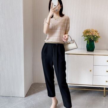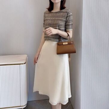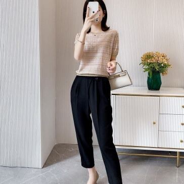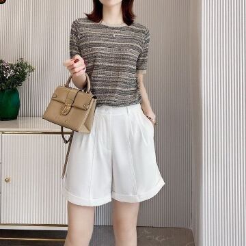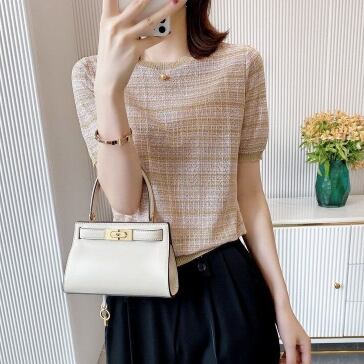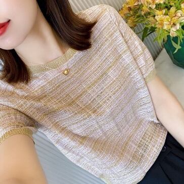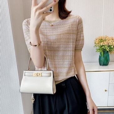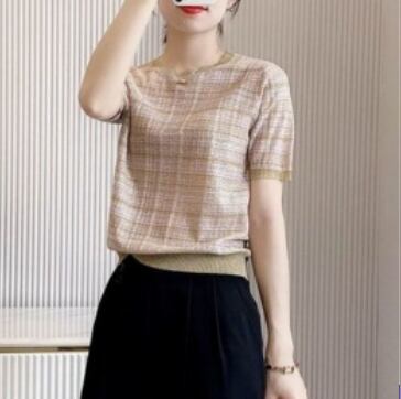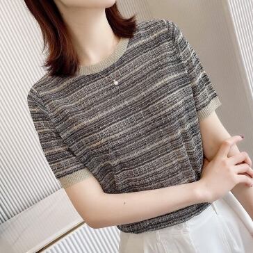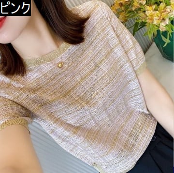 ニュアンスカラーで涼し気な半袖ニットTシャツ
