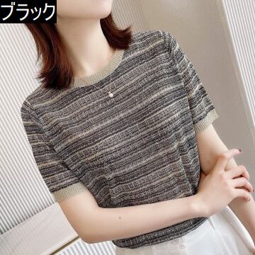 ニットTシャツ トップス カットソー シンプル ブラック 黒 ピンク レギュラー丈 袖あり 半袖 ラウンドネック ストレート 大人女子 大人 上品 おしゃれ きれいめ シンプル デイリーウェア レトロ レトロ風 こなれ感 個性的 デザイン 主役級 存在感 柄 夏 サマー 20代 10代 30代 40代 レディース 女性用 オフィス ビジネス OL 通勤 学生 学校 通学 着回し 普段使い ファッション コーデ S M L XL 2XL ニュアンスカラー ペールトーン 淡色