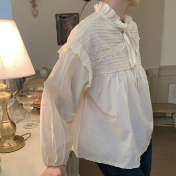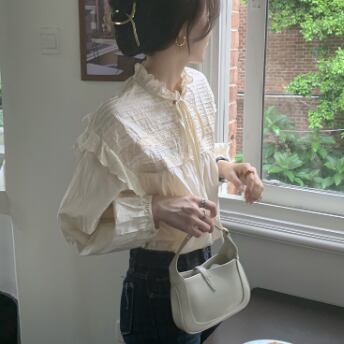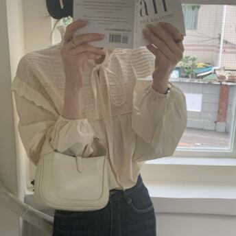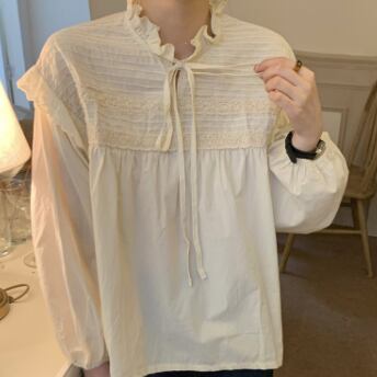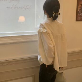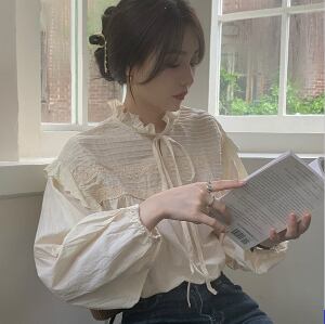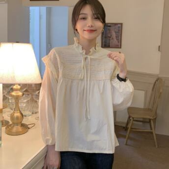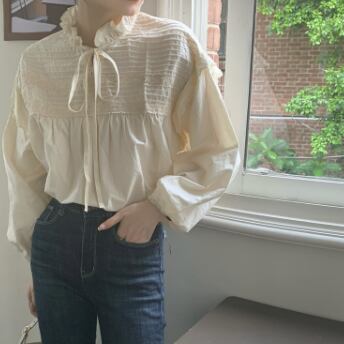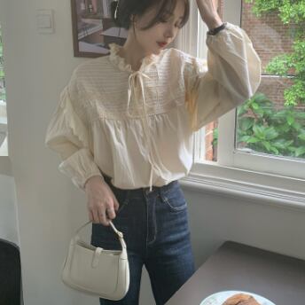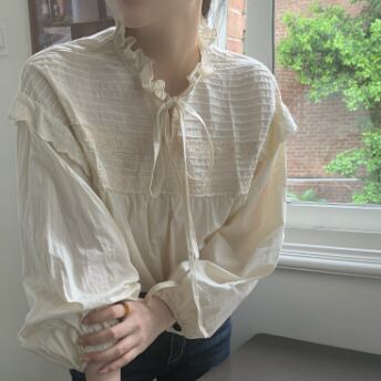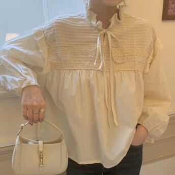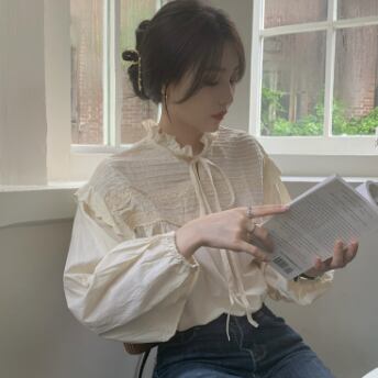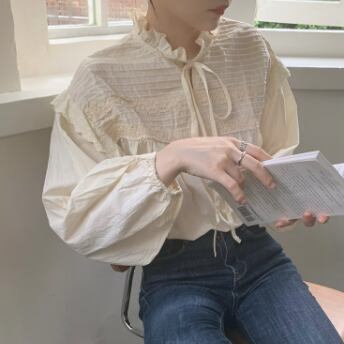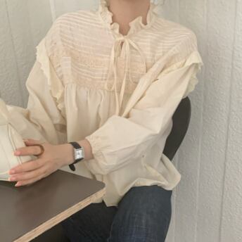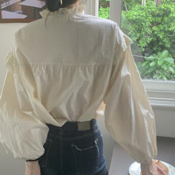 ボリューム袖とフリルでクラシカルな印象の長袖シャツ
