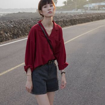 トレンド感あふれる大人カラーの長袖シャツが登場!落ち着いた赤系のレッドやワインレッド、ミディアム丈でカジュアルにもきれいめにも着こなせる一枚です。Vネックがデコルテをきれいに見せ、ストレートシルエットで抜け感ととろみ感を演出します。前開きになっていて、ポケットもついているので、お好きなアクセサリーをプラスしてスタイリングしても◎。
