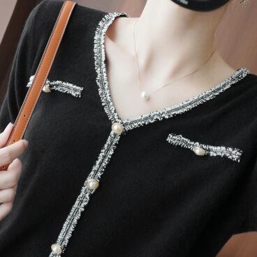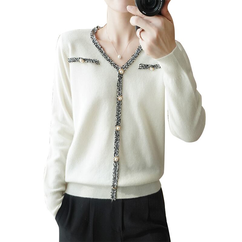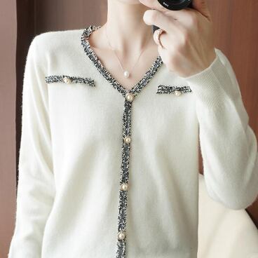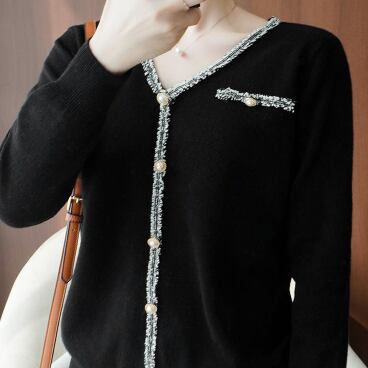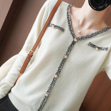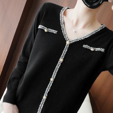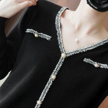 パール風ボタンが華やかなニットカーディガンです。