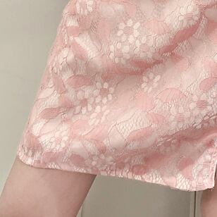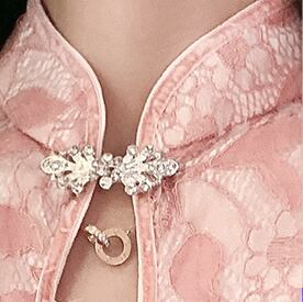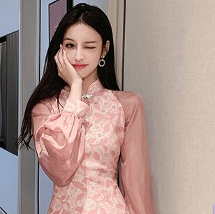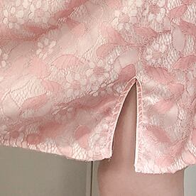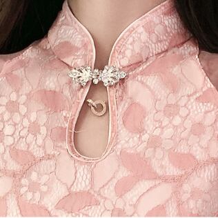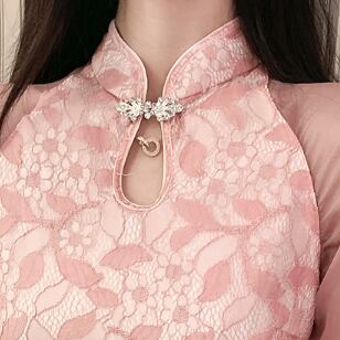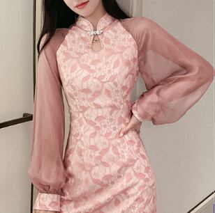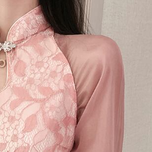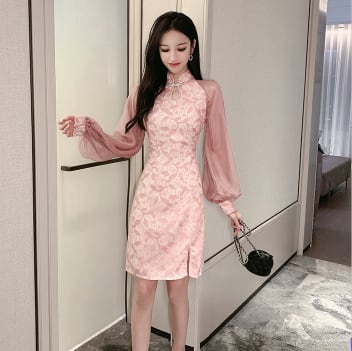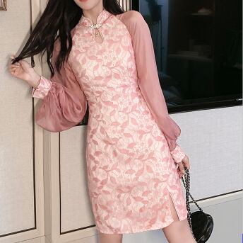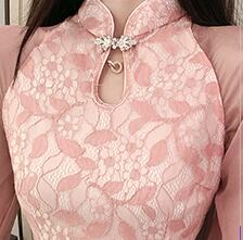 ピンクカラーがキュートなチャイナ服デザイン膝丈ワンピースドレスです。