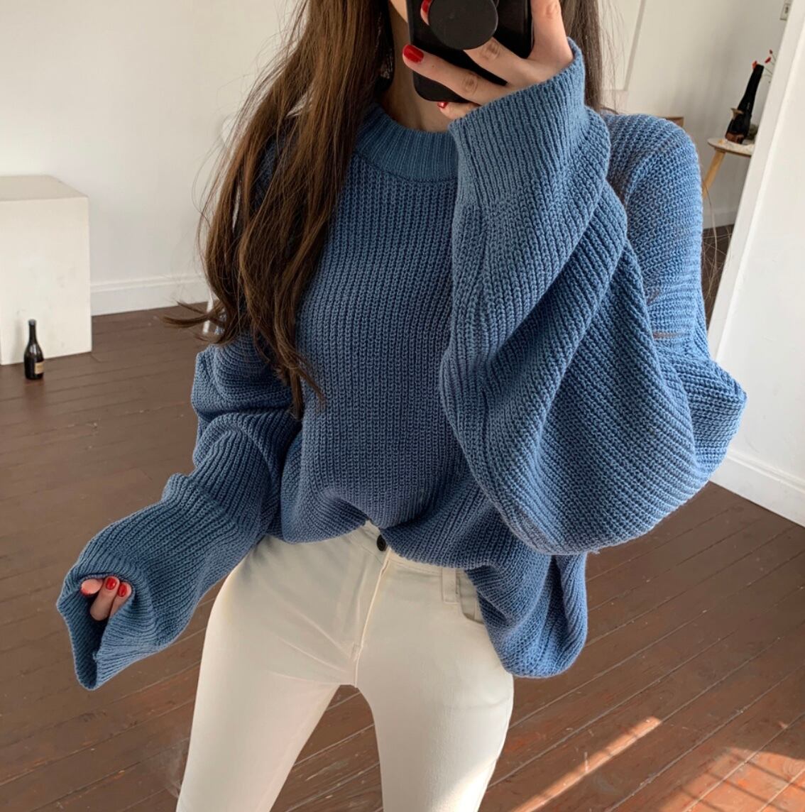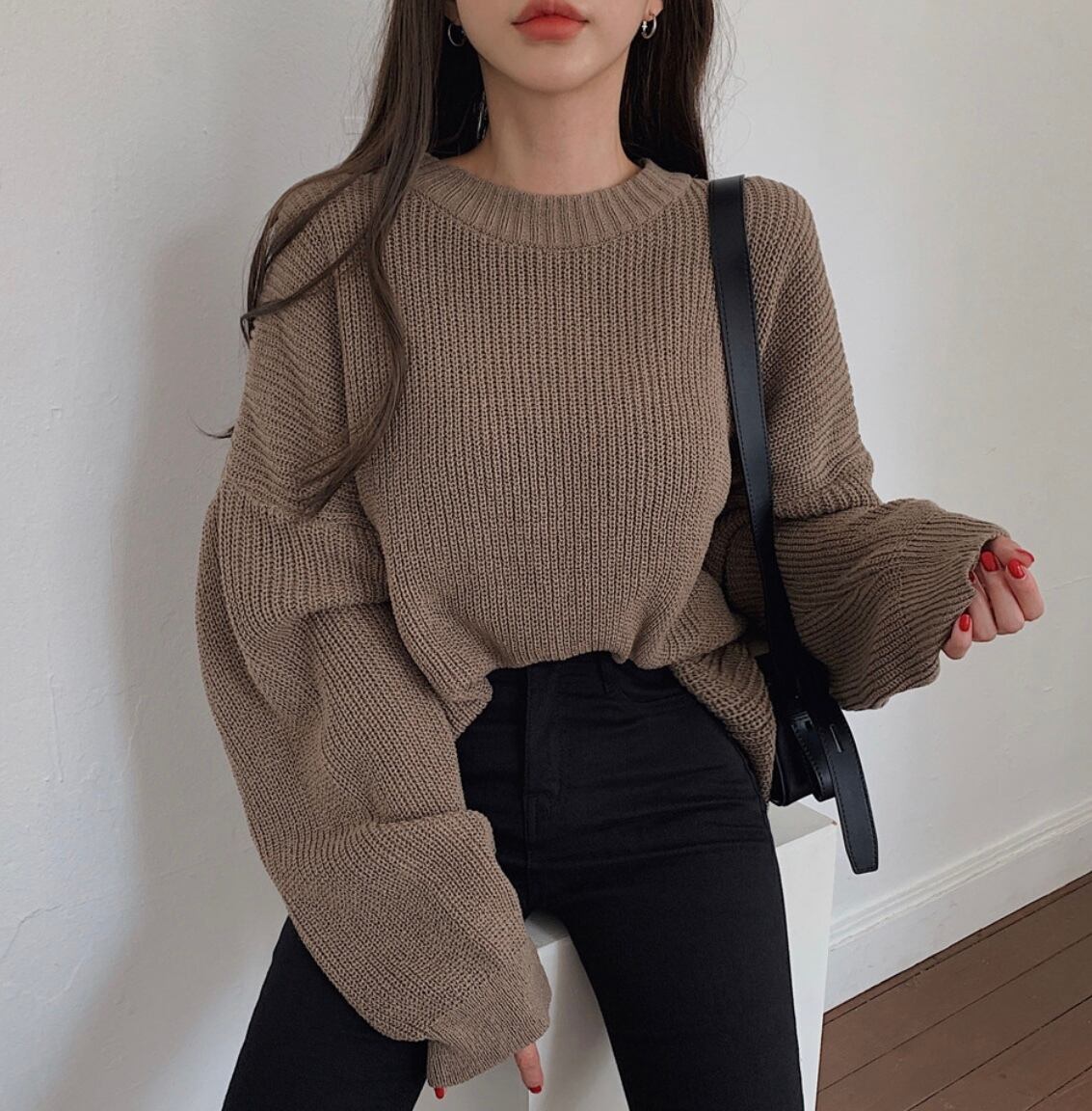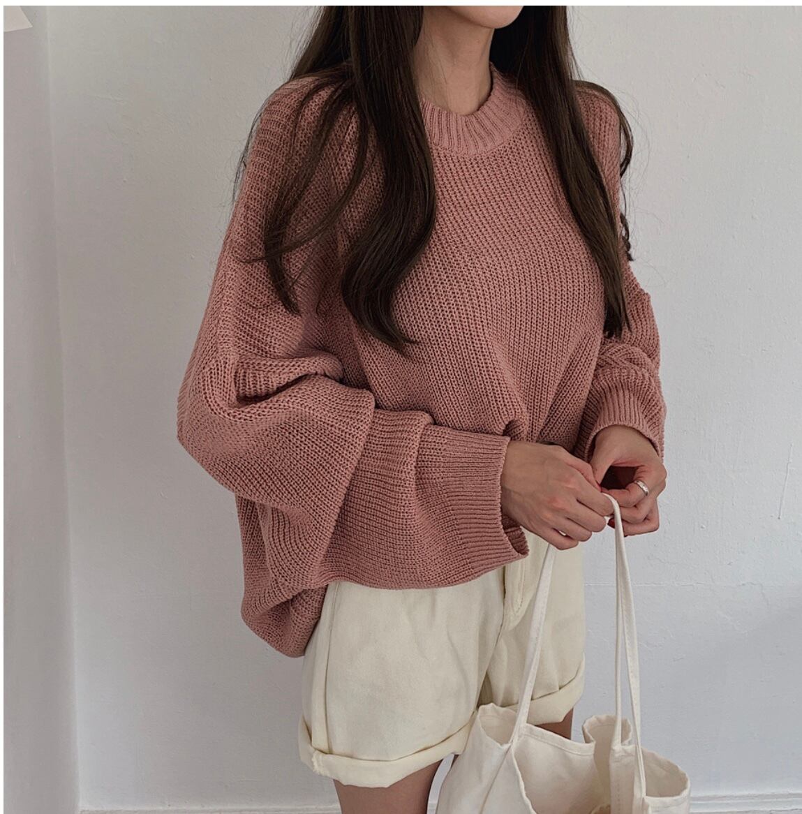 オーバーサイズ ざっくり編み ロングスリーブ トップス セーター ミディアム丈 袖あり 長袖 ドロップショルダー 萌え袖 ラウンドネック クルーネック ニット かわいい 大人可愛い シンプル カジュアル 上品 おしゃれ お洒落 ルーズ ラフ 春 秋 冬 レディース 女性用 ママ 女の子 学生 通学 お出かけ 公園デビュー 女子会 休日 着回し 普段使い 重ね着 体系カバー 韓国系 オルチャン ファッション コーデ フリーサイズ 大きめ ゆったり ゆる サイズ ホワイト ブラック ブルー ブラウン ピンク