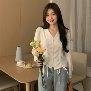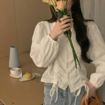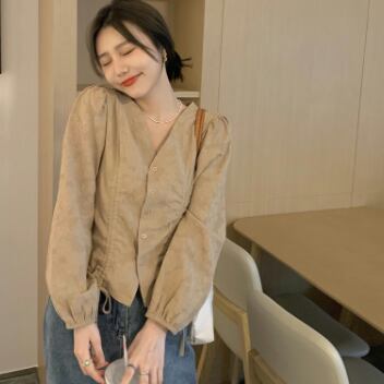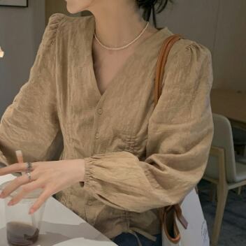 ボリューム袖×シャーリングがレディーな雰囲気のシャツ