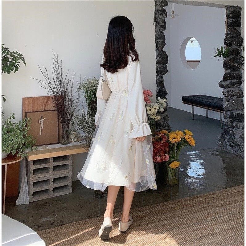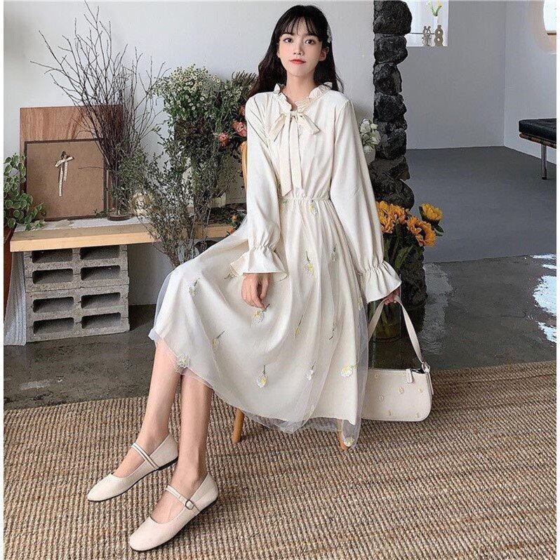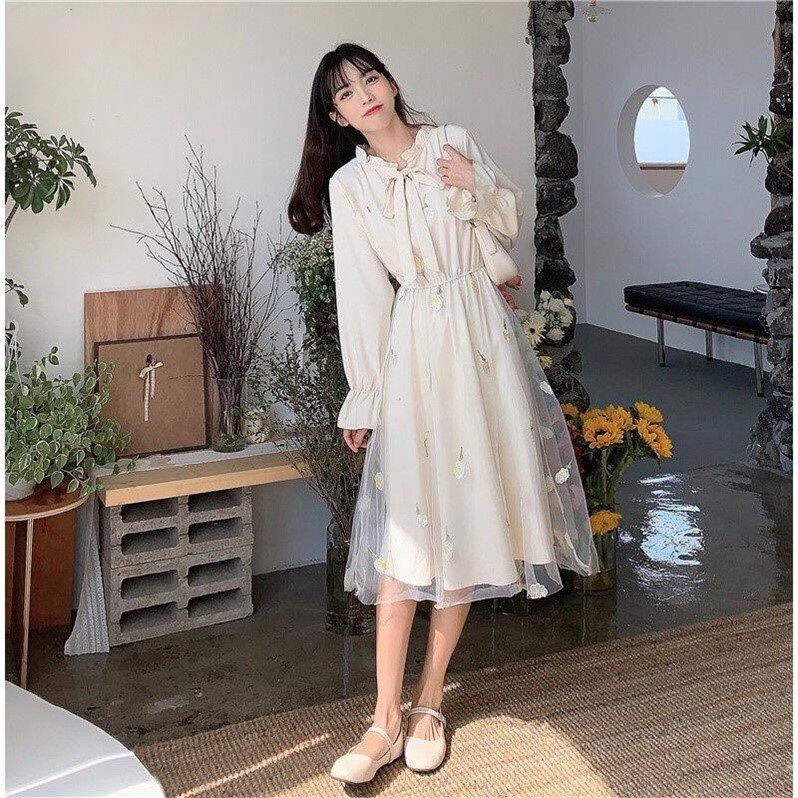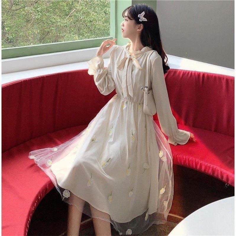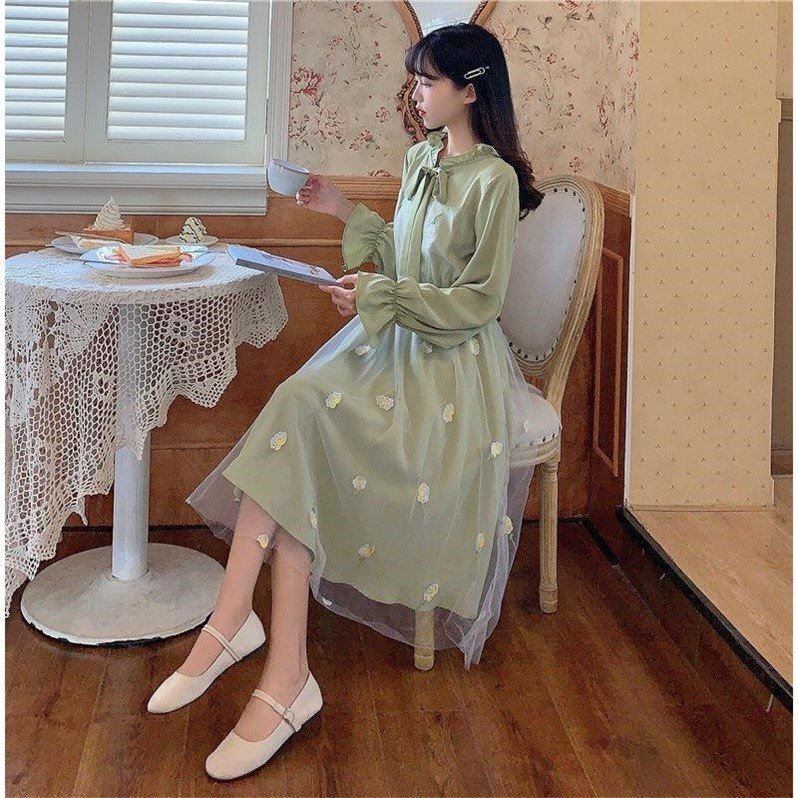 シフォンワンピース トップス スイート ガーリー アプリコット グリーン 緑 ミドル丈 袖あり 長袖 リボンタイ フレア ギャザー 透け感 シアー 大人女子 大人 上品 おしゃれ デイリーウェア レトロ レトロ風 こなれ感 キュート かわいい 女子 個性的 デザイン 主役級 存在感 柄 花柄 フラワー 春 スプリング 20代 10代 レディース 女性用 学生 学校 通学 デート お出かけ 女子会 食事会 着回し 普段使い S M L XL ペールトーン 淡色