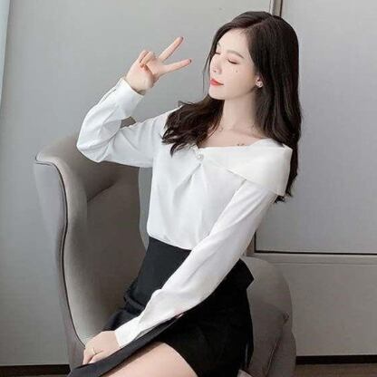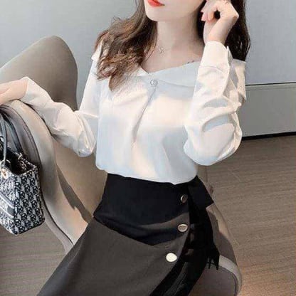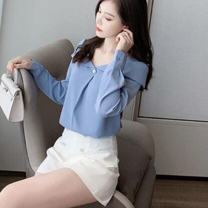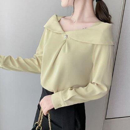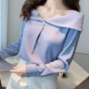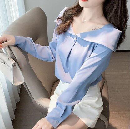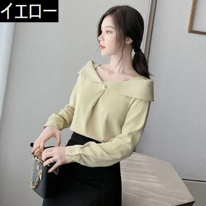 シフォンブラウス トップス シャツ ブラウス スイート ホワイト 白 ブルー 青 イエロー 黄色 レギュラー丈 袖あり 長袖 オフショルダー ボタン 大人女子 大人 上品 おしゃれ きれいめ シンプル エレガント デイリーウェア レトロ レトロ風 こなれ感 個性的 デザイン 主役級 存在感 無地 春 スプリング 20代 30代 40代 レディース 女性用 オフィス ビジネス OL 通勤 学生 学校 通学 着回し 普段使い S M L XL 2XL ペールトーン 淡色