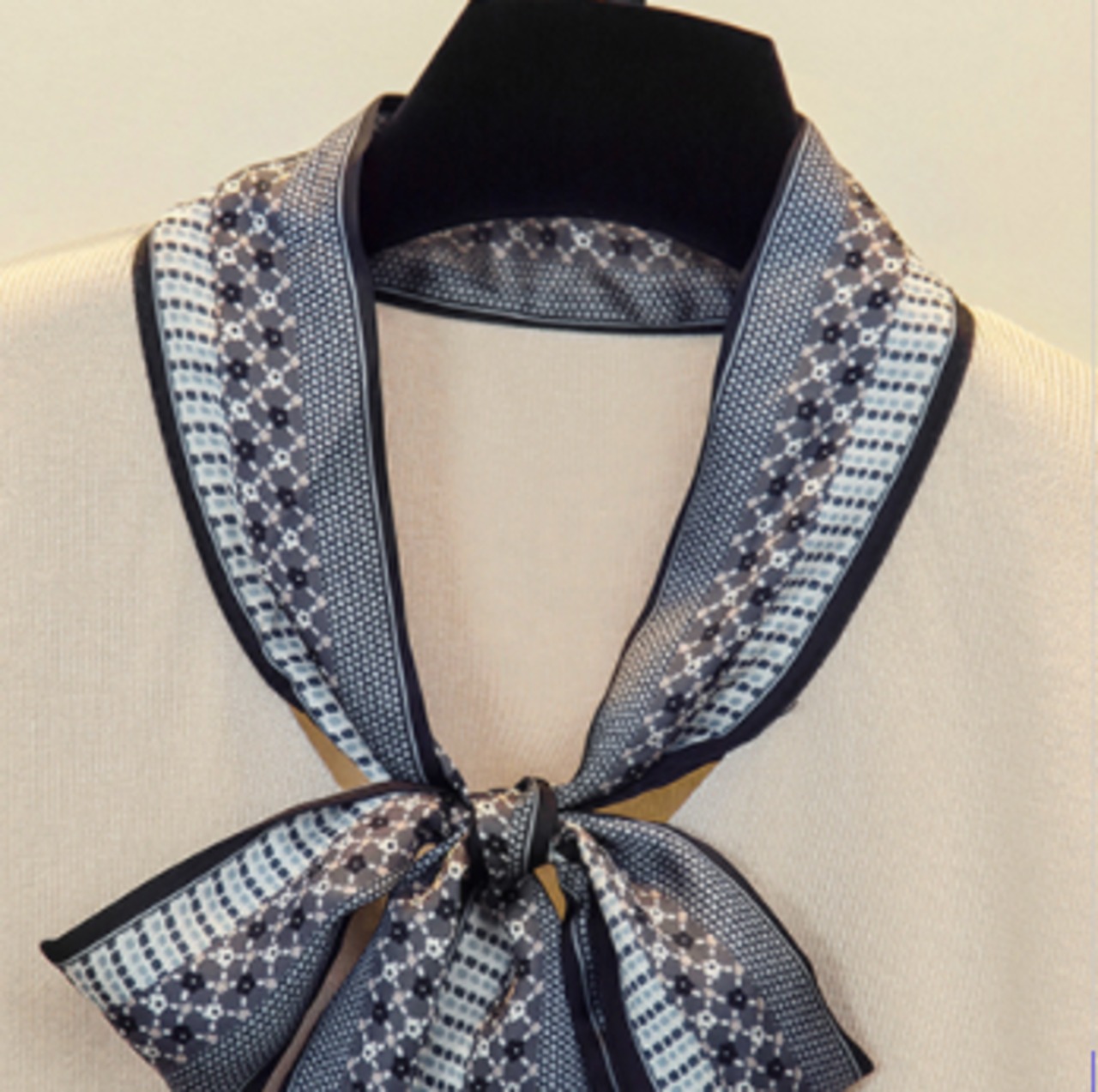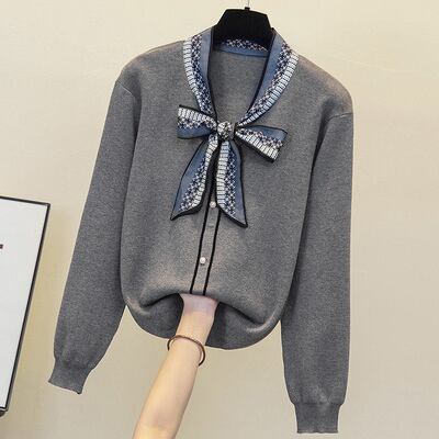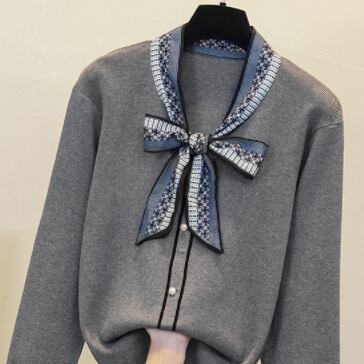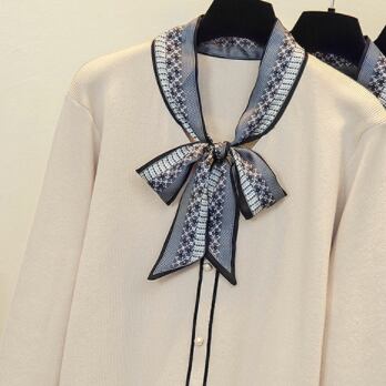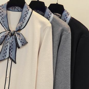 リボンタイが目を引くニットセーター