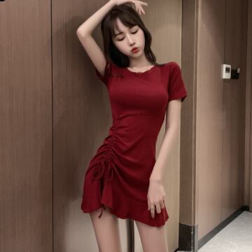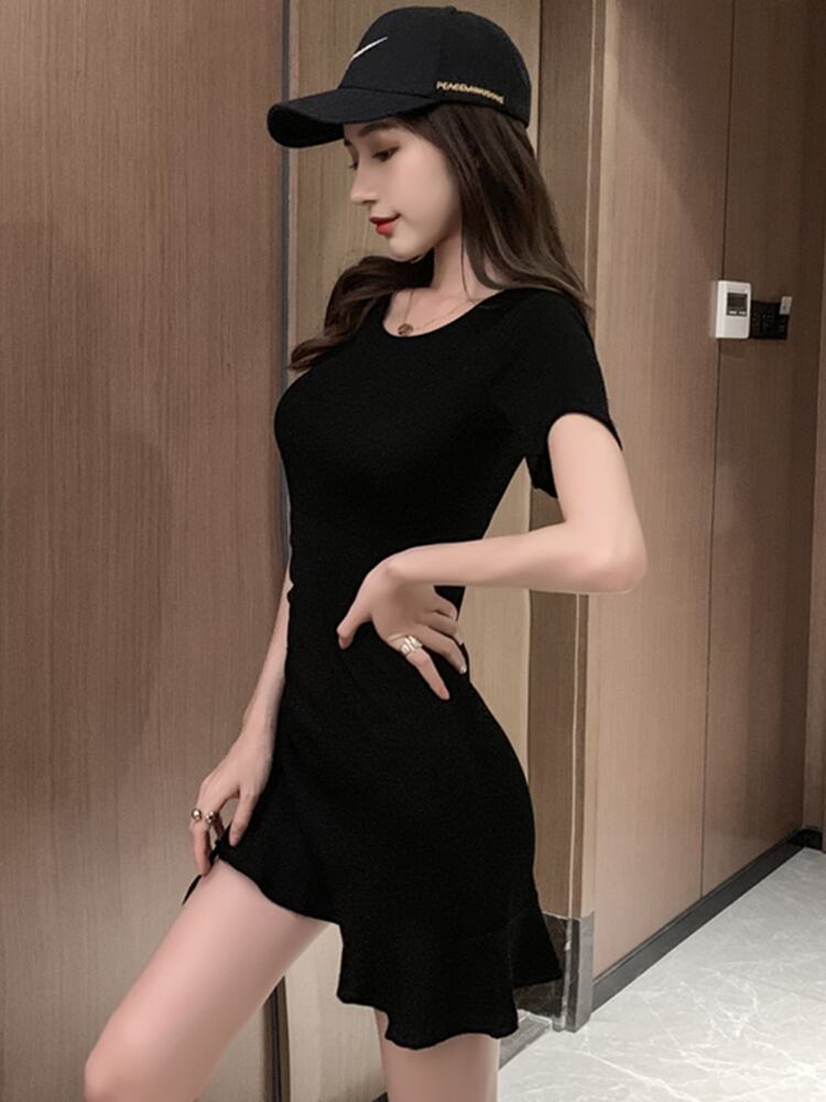 Tシャツタイトワンピース ワンピース シャツ ミニ丈 ショート 半袖 ラウンドネック フレア スリム タイト 細身 Aライン スマート リボン ウエストマーク 綿 お得 爽やか 大人スタイル かわいい 大人可愛い シンプル カジュアル 上品 おしゃれ かっこいい 大人女子 スポーティー ラブリー キュート 個性的 セクシー 無地 春 夏 10代 20代 30代 40代 レディース ママ 女の子 デート お出かけ ジム 着回し ファッション モテ S M L コンパクト タイトデザイン 黒 ブラック