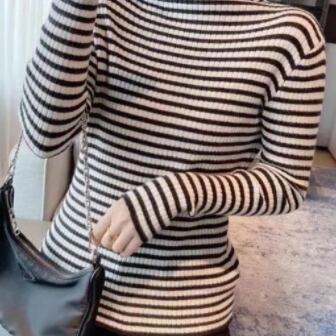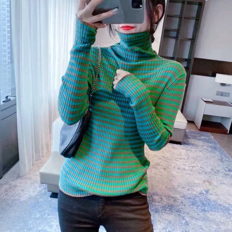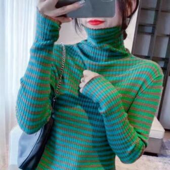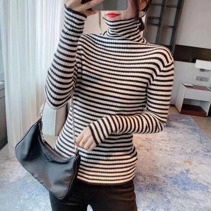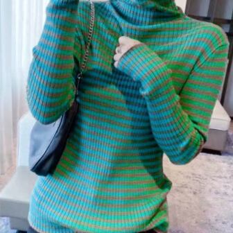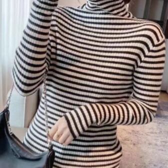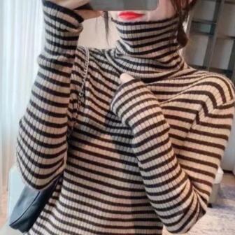 ストライプタートルネックセーター トップス セーター ミディアム丈 袖あり 長袖 タートルネック 襟なし スリム タイト 細身 ストレート リブ リブニット ニット かわいい 大人可愛い きれいめ カジュアル おしゃれ レトロ 大人可愛い 大人女子 こなれ感 ラフ 個性的 クール モード系 主役級 存在感 抜け感 ストライプ 秋 冬 レディース 女性用 OL 通勤 学生 通学 デート お出かけ 女子会 休日 旅行 着回し 普段使い ファッション コーデ スタイル 新作 トレンド 流行 インスタ映え