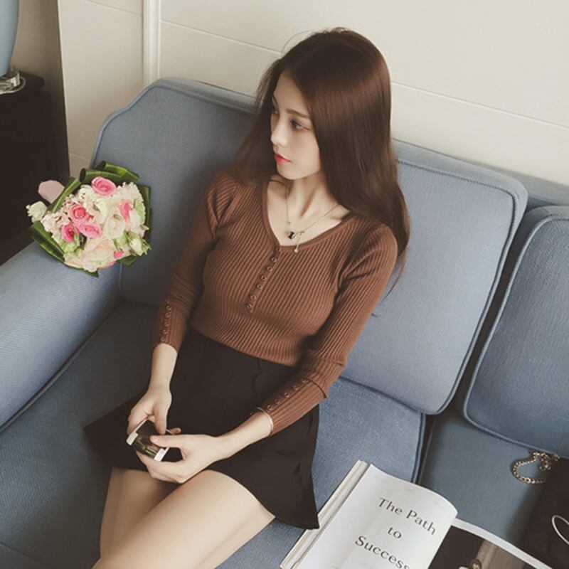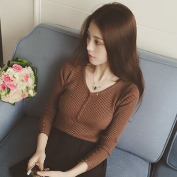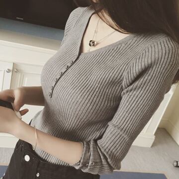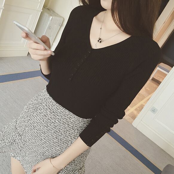 Vネックのタイトニットです。