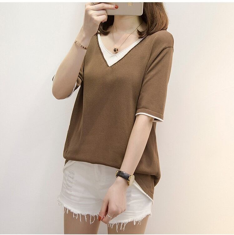 商品名にもある通り、今回ご紹介するのは「VネックTシャツ」です。ブラック、レッド、ブラウンの3色からお選びいただけます。スリムで細身のシルエットが美しく、ストレートなラインがスマートな印象を与え、どんなスタイルにも合わせやすいアイテムです。シンプルながらも大人可愛い雰囲気を漂わせ、上品でおしゃれな印象です。春、秋、冬問わず、一年を通して活躍することができます。