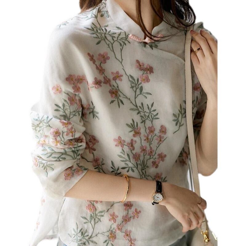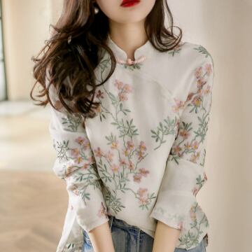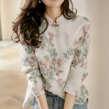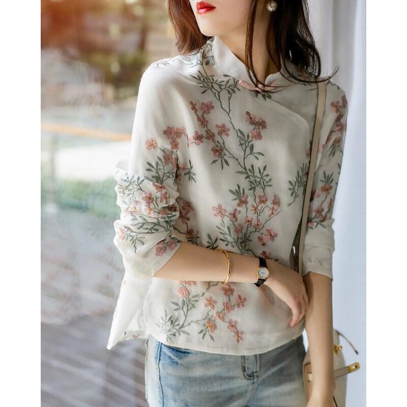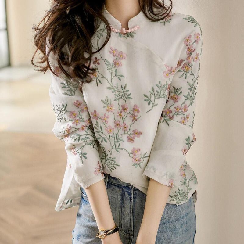 チャイナカラーブラウス ブラウス ミディアム丈 袖あり 長袖 チャイナカラー ストレート 刺繍 綿 薄手 かわいい 大人可愛い きれいめ 大人 上品 おしゃれ レトロ アジアン エスニック エキゾチック 大人可愛い 大人女子 こなれ感 ラブリー キュート 個性的 主役級 存在感 抜け感 花柄 春 秋 レディース 女性用 OL 通勤 学生 通学 デート お出かけ 女子会 イベント リゾート 旅行 ホテル ガーデン レストラン 着回し 普段使い ファッション コーデ スタイル 新作 流行 インスタ映え