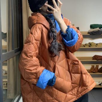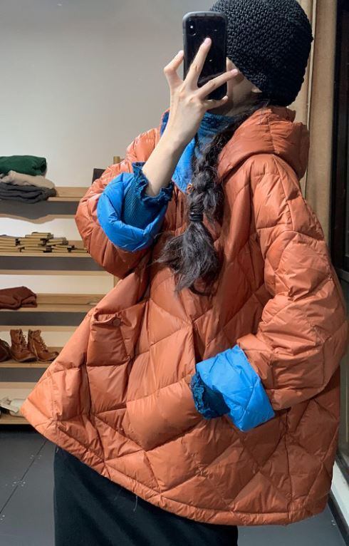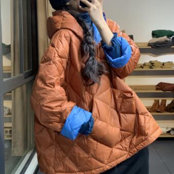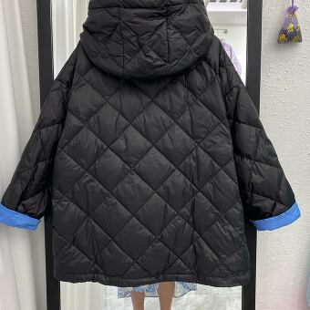 リバーシブルの配色がかわいいプルオーバーダウン風コートです。