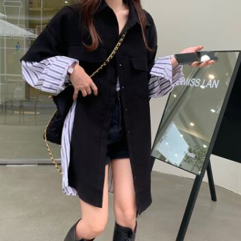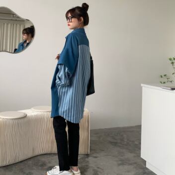 トップス シャツ 長袖 切り替えデザイン ドッキング かわいい 大人可愛い シンプル カジュアル おしゃれ お洒落 大人可愛い 大人女子 こなれ感 ラフ メンズライク ボーイッシュ スポーティー キュート ガーリー ルーズ 主役級 存在感 無地 ストライプ 春 10代 20代 30代 レディース 女性用 ママ 女の子 学生 デート 女子会 お泊まり 休日 着回し 普段使い 韓国 韓国系 ファッション コーデ スタイル モテ 新作 定番 送料無料 トレンド 流行 インスタ映え 大きめ ゆったり ゆる 海外