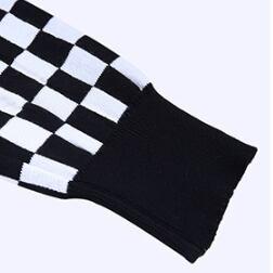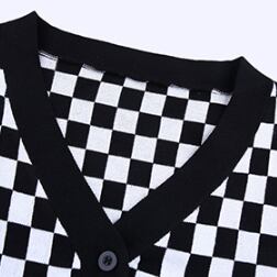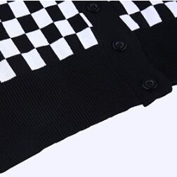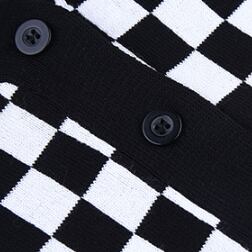 インパクト抜群なモノトーンチェッカーフラッグ柄のニットカーディガン。