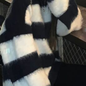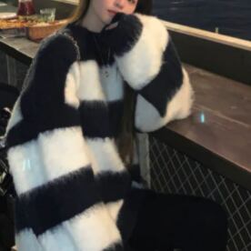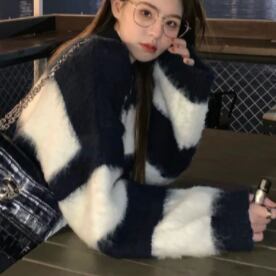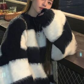 トップス セーター 長袖 萌袖 ラウンドネック ふわふわ かわいい 大人可愛い シンプル カジュアル おしゃれ お洒落 大人可愛い 大人女子 こなれ感 ラフ キュート ガーリー ルーズ 個性的 主役級 存在感 ボーダー 秋 冬 10代 20代 30代 レディース 女性用 女の子 学生 デート お出かけ 女子会 お泊まり 休日 韓国 韓国系 オルチャン ファッション コーデ スタイル 楽ちん 暖かい モテ 新作 定番 送料無料 トレンド 流行 インスタ映え 大きい 大きめ ビッグサイズ ゆったり ゆる 海外