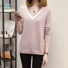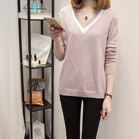 このVネックセーターは、大人の女性にぴったりの上品なデザインです。シンプルでモダンな無地のカラー5種類からお選びいただけます。細身のシルエットとVネックのデザインが、ほどよいセクシーさを演出します。