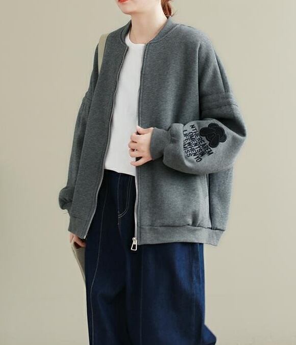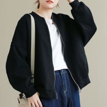 アウター ブルゾン ジャケット 長袖 ラウンドネック ファスナー かわいい 大人可愛い おしゃれ お洒落 かっこいい 大人可愛い 大人女子 こなれ感 ラフ メンズライク ボーイッシュ スポーティー キュート ガーリー ルーズ 主役級 存在感 無地 秋 冬 10代 20代 30代 レディース 女性用 女の子 学生 デート お出かけ 公園デビュー 女子会 お泊まり 休日 アウトドア 高原 韓国 韓国系 ファッション コーデ スタイル 防寒 新作 定番 送料無料 トレンド 流行 大きい 大きめ ビッグサイズ