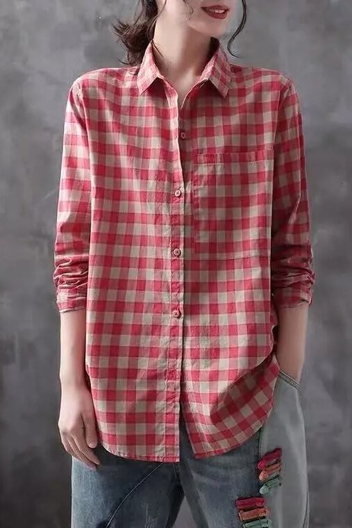 「トップス シャツ 長袖 襟付き かわいい 大人可愛い シンプル カジュアル おしゃれ お洒落 レトロ 大人可愛い 大人女子 ラブリー キュート ガーリー 主役級 存在感 チェック柄 ギンガムチェック 春 10代 20代 30代 レディース 女性用 女の子 デート お出かけ 女子会 お泊まり 休日 着回し 普段使い 韓国 韓国系 ファッション コーデ スタイル モテ 新作 定番 送料無料 トレンド 流行 インスタ映え インポート 海外 人気 女子力 大人カジュアル 合わせやすい レイヤード コスパ 値段重視」という長い商品名の、鮮やかなギンガムチェック柄シャツ♪