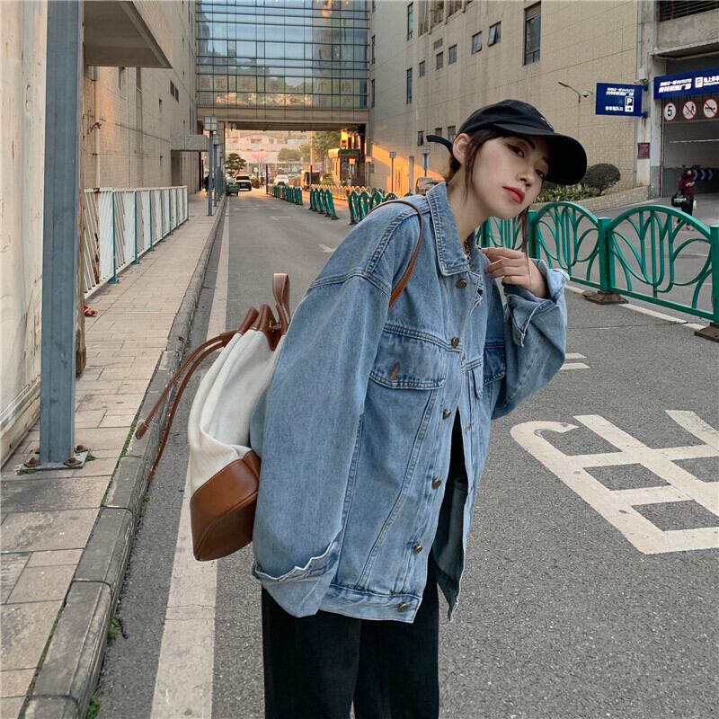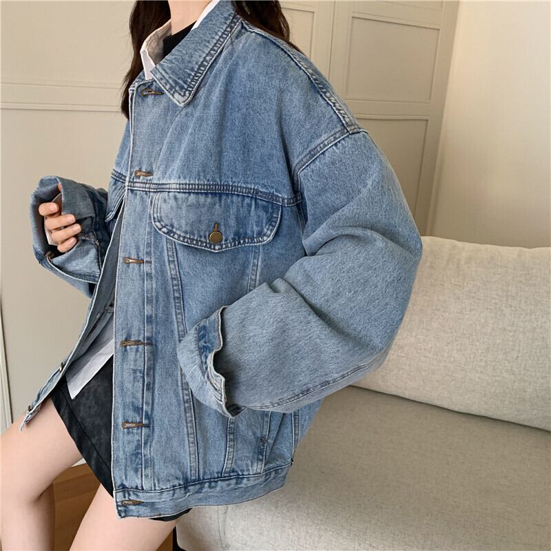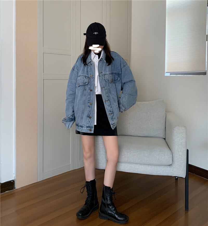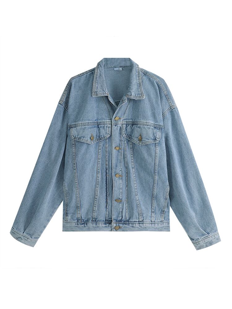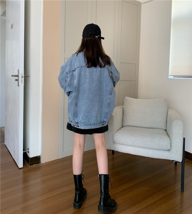 オーバーサイズ ロングスリーブ ウォッシュド加工 羽織りもの アウター ジャケット Gジャン ミディアム丈 袖あり 長袖 ドロップショルダー 萌え袖 襟あり 前開き ブルーデニム シンプル カジュアル かっこいい おしゃれ お洒落 大人女子 こなれ感 ラフ ルーズ ボーイッシュ メンズライク 無地 春 秋 レディース 女性用 女の子 ママ 学生 通学 お出かけ 休日 着回し 普段使い 重ね着 韓国系 オルチャン ファッション 定番 体系カバー S M L XL 大きめ ゆったり ゆる サイズ ブルー
