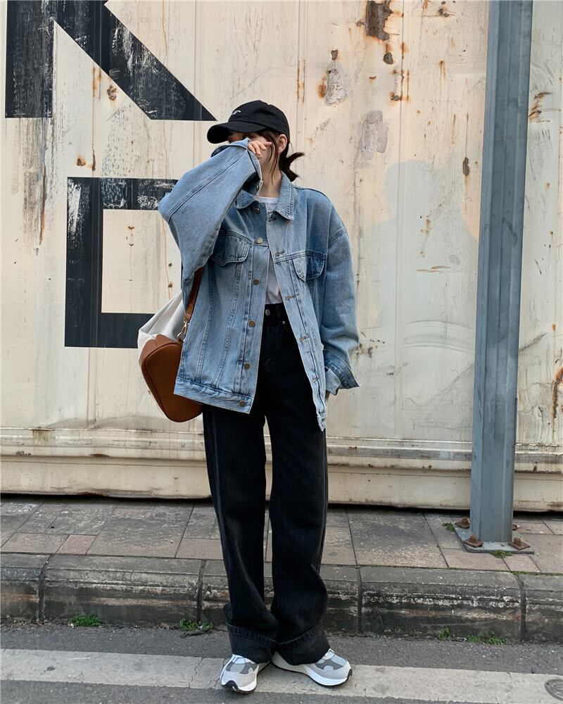 オーバーサイズ&ドロップショルダーのゆるシルエットが今っぽいデニムジャケット。