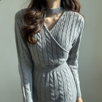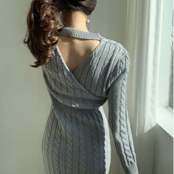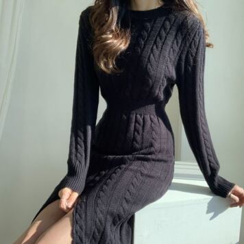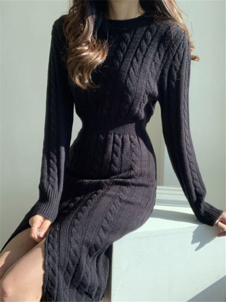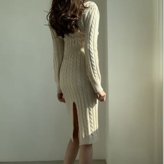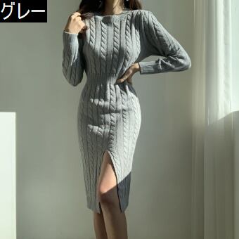 ニットワンピース シンプル セクシー ブラック 黒 ホワイト 白 グレー 灰色 ミドル丈 袖あり 長袖 Vネック ラウンドネック スリム 細身 タイト スリット 2way 大人女子 大人 上品 おしゃれ エレガント デイリーウェア レトロ レトロ風 こなれ感 個性的 デザイン 主役級 存在感 無地 秋 オータム 冬 ウインター 20代 10代 30代 レディース 女性用 オフィス ビジネス OL 通勤 学生 学校 通学 着回し 普段使い S M L XL