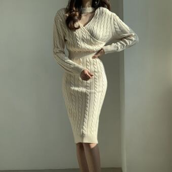 シンプルでありながら、セクシーさも感じられるニットワンピース。ミドル丈で袖あり、Vネックとラウンドネックの2way仕様で、大人女子にふさわしい上品さと個性的なデザイン性を併せ持った一枚です。スリムで細身のシルエットは、ボディラインを美しく見せてくれ、スリットの入ったデザインが女性らしさを演出してくれます。無地のカラーバリエーションに加え、レトロ風の柄も満載。さまざまなスタイルに合わせやすいので、デイリーウェアからオフィススタイルまで幅広く活躍してくれます。