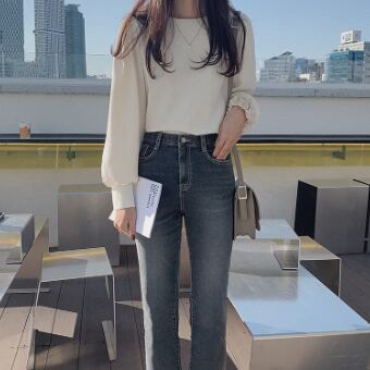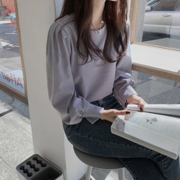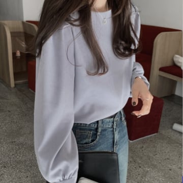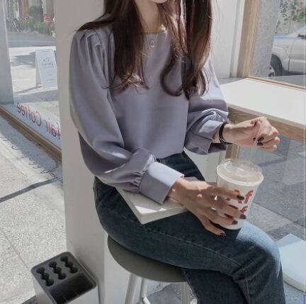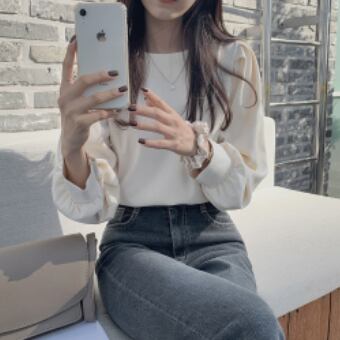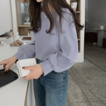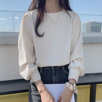 ランタンスリーブトップス プルオーバー シンプル アプリコット ブルー 青 レギュラー丈 袖あり 長袖 ボリューム袖 ランタンスリーブ ラウンドネック ストレート 大人女子 大人 上品 おしゃれ きれいめ シンプル デイリーウェア レトロ レトロ風 こなれ感 ルーズ シルエット ラフ 個性的 デザイン 主役級 存在感 無地 春 スプリング 秋 オータム 20代 30代 40代 レディース 女性用 オフィス ビジネス OL 通勤 着回し 普段使い S M L XL