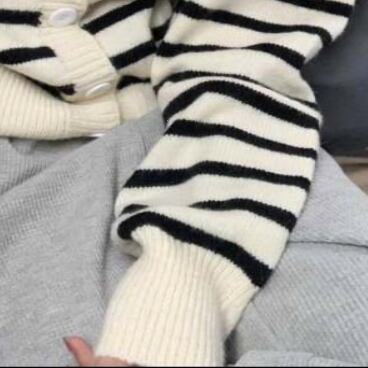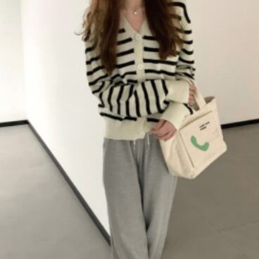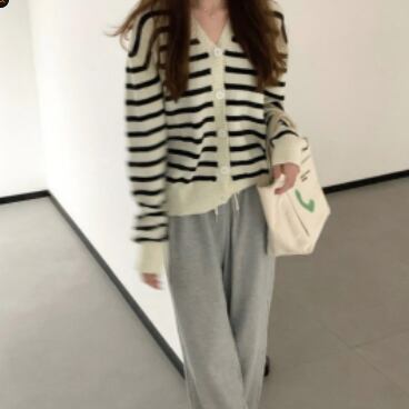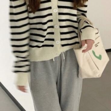 シンプルで合わせやすいボーダーカーディガンです。