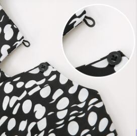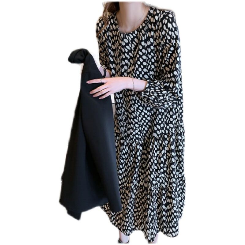 水玉ワンピース トップス スイート ガーリー ブラック 黒 ミドル丈 袖あり 長袖 ラウンドネック ボタン フリル ポリエステル 大人女子 大人 上品 おしゃれ デイリーウェア レトロ レトロ風 こなれ感 ルーズ シルエット ラフ キュート かわいい 女子 個性的 デザイン 主役級 存在感 柄 ドット柄 水玉 春 スプリング 20代 10代 30代 レディース 女性用 マタニティ デート お出かけ 女子会 食事会 3XL 4XL 5XL XL 2XL 大きいサイズ