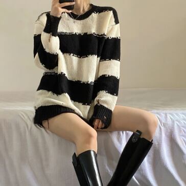 トップス ワンピース セーター 長袖 ニット かわいい 大人可愛い シンプル おしゃれ お洒落 大人可愛い 大人女子 キュート ガーリー 主役級 存在感 ボーダー 春 秋 10代 20代 30代 40代 レディース 女性用 ママ 女の子 デート お出かけ 女子会 お泊まり 休日 着回し 普段使い 重ね着 韓国 韓国系 ファッション コーデ スタイル モテ ダメージ 穴あき 新作 定番 送料無料 トレンド 流行 大きい 大きめ ビッグサイズ ゆったり ゆる インポート 海外 人気 女子力 大人カジュアル