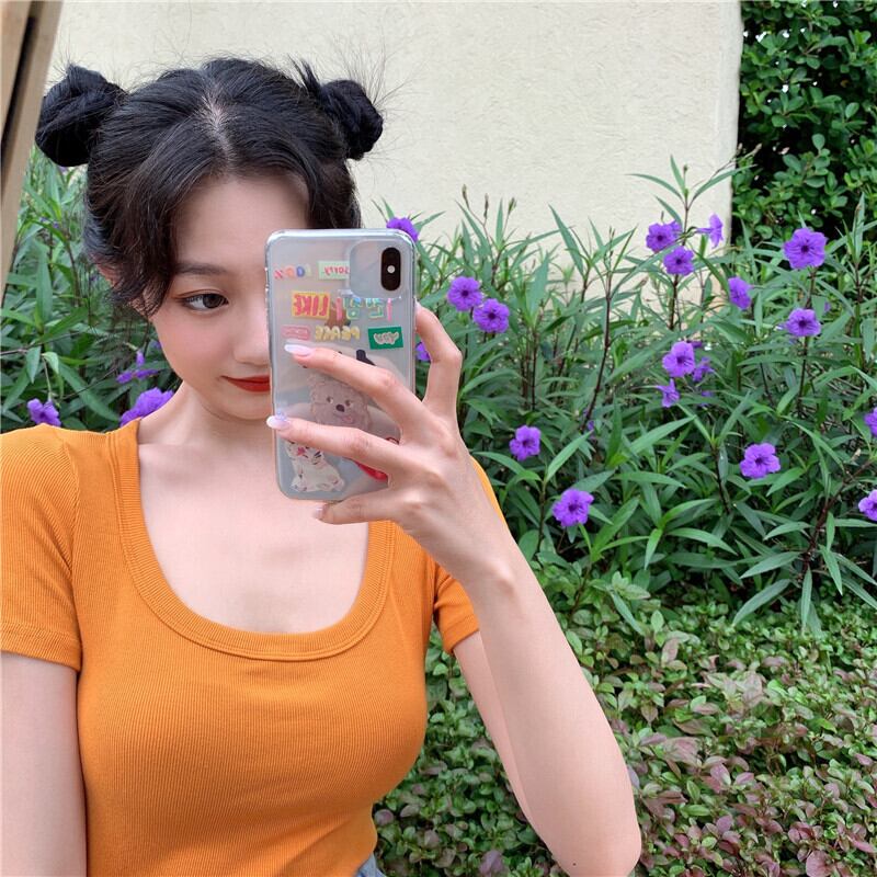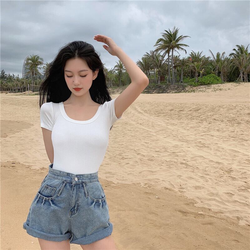 鎖骨見せ デコルテ見せ 女っぽ クロップド トップス カットソー ショート丈 袖あり 半袖 Uネック スリム タイト 細身 スマート リブ 伸縮性 シンプル カジュアル おしゃれ お洒落 大人 かっこいい クール セクシー 抜け感 無地 春 夏 レディース 女性用 女の子 ママ 学生 通学 デート お出かけ 休日 リゾート 旅行 着回し 普段使い 重ね着 韓国系 オルチャン ファッション モテ 小さいサイズ プチプラ 安い 定番 ベーシック ホワイト ブラック ブルー オレンジ ピンク カラバリ