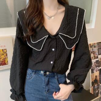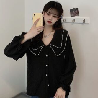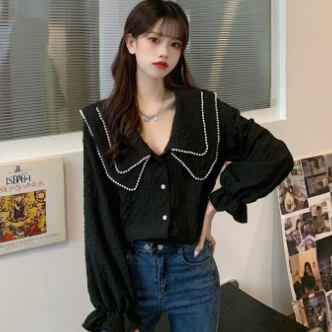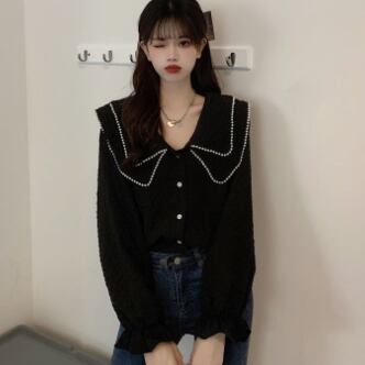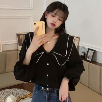 大きい襟付きのブラウスです。