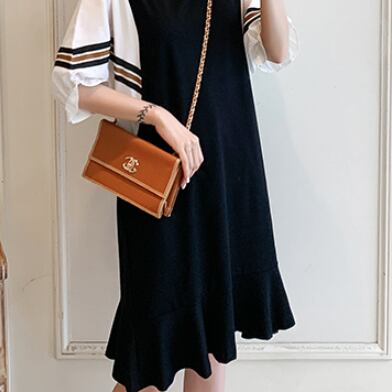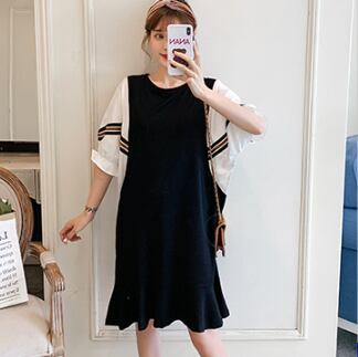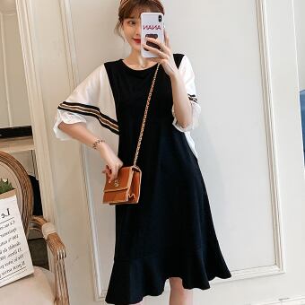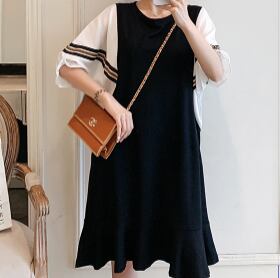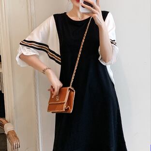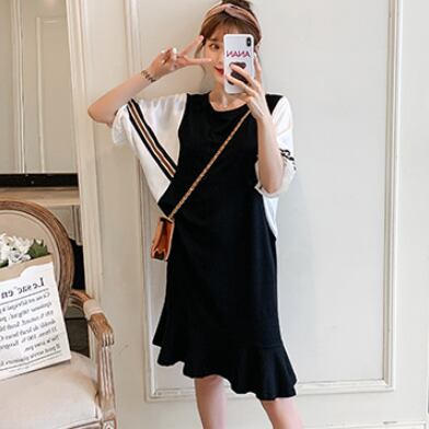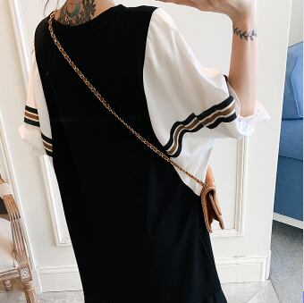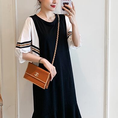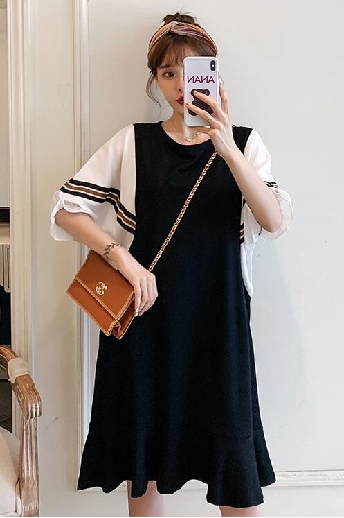 半袖ワンピース トップス Tシャツ スイート ガーリー ブラック 黒 ひざ丈 ミドル丈 袖あり 半袖 バットスリーブ ラウンドネック Aライン フリル 大人女子 大人 上品 おしゃれ デイリーウェア レトロ レトロ風 こなれ感 ルーズ シルエット ラフ キュート かわいい 女子 個性的 デザイン 主役級 存在感 無地 配色 ライン 夏 サマー 20代 10代 30代 レディース 女性用 マタニティ 着回し 普段使い M L XL 2XL 3XL 4XL 大きいサイズ