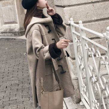 ホーンバックルコート アウター フーディー カジュアル ブラウン 茶色 ミディアム丈 袖あり 長袖 フード ボタン ポリエステル 大人女子 大人 上品 おしゃれ デイリーウェア レトロ レトロ風 こなれ感 ルーズ シルエット ラフ キュート かわいい 女子 個性的 デザイン 主役級 存在感 無地 柄 チェック柄 秋 オータム 冬 ウインター 20代 10代 30代 レディース 女性用 オフィス ビジネス OL 通勤 学生 学校 通学 着回し 普段使い S M L XL
