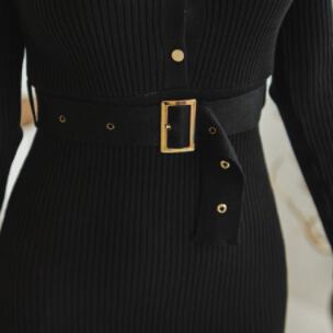 この冬、大人女子におすすめのニットワンピースが入荷しました!トップスとしても着用できるモダンなブラック、ブルー、ベージュの無地カラーがおしゃれな存在感を放ちます。細身でタイトなシルエットが美脚を演出し、ミドル丈で足長効果も抜群です。スタンドカラーやベルト、ボタン、スリットが施されたデザイン性も魅力。こなれ感や個性的なレトロ風スタイルがお好みの方にはたまらない一着です。OLやビジネスシーンでも活躍してくれます。また、冬はもちろん、秋から春にかけてもサイズの調節がラクラクなワンサイズ展開で、着回し力もばっちり。大人の女性のエレガントで主役級の存在感を放てる、存在感抜群の一枚です。